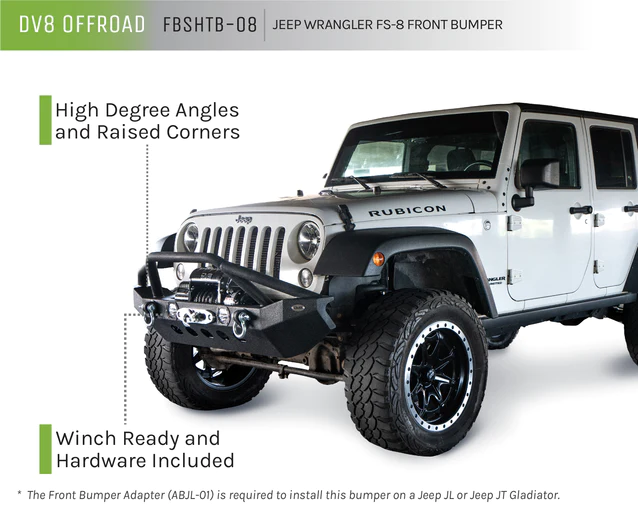 The DV8 Offroad FBJL-01 Wrangler JL & Gladiator Stubby Front Bumper was designed with the hardcore Jeeper in mind. It